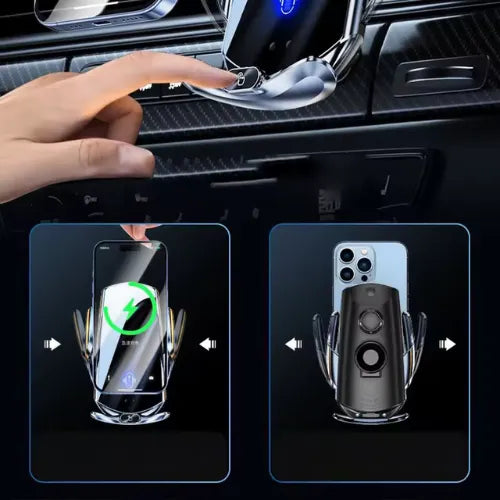 Disfruta de la libertad de cargar tu teléfono sin cables mientras conduces. El Soporte Cargador Universal detecta automáticamente tu dispositivo y comienza a cargarlo al instante, sin necesidad de conectar nada.